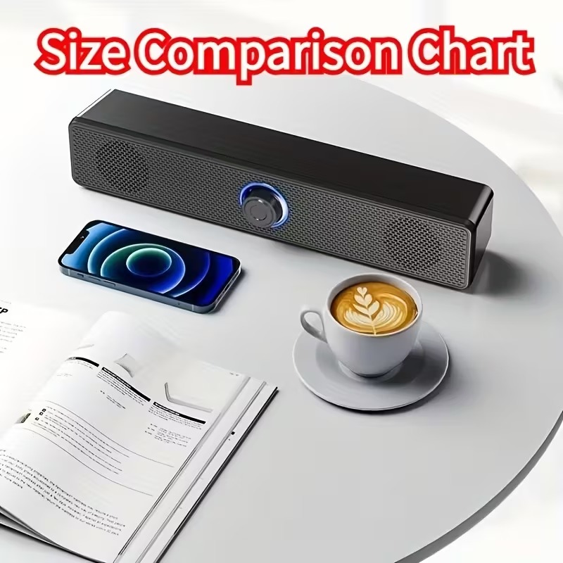 Barra de sonido de escritorio con cable de 12,4 pulgadas alimentada por USB con enchufe de 3,5 mm y control de volumen, alta calidad de audio estéreo para computadoras y portátiles, negro, barra de sonido de escritorio, alimentada por USB, ideal para Navidad